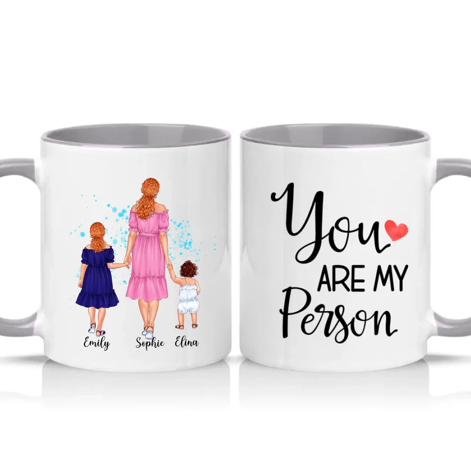 11oz personalised ceramic mug for mom and two daughters. Dishwasher and microwave safe. A meaningful family gift perfect for all occasions in the UK.